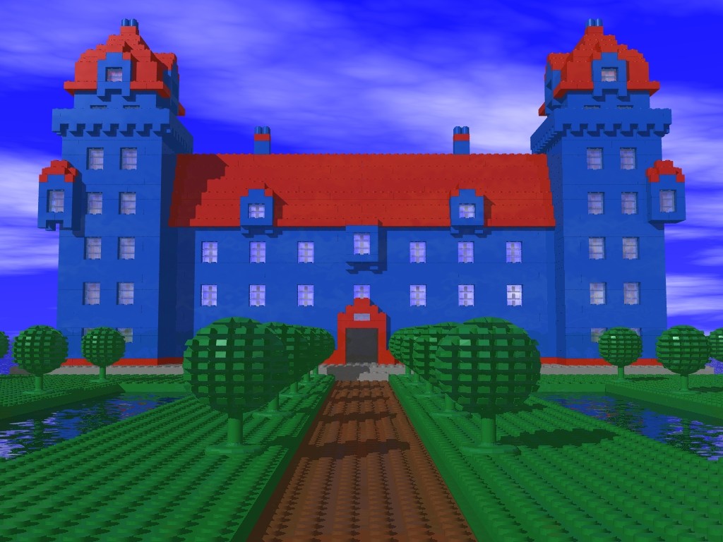 no, just kidding there. But it looks roomy enough, doesn't it? If you want the big picture (1024x768) it's here (400kB!). The model consists of 1852 pieces, and I assure you, it wasn't built in an afternoon - in fact it took more like all afternoons in a week. The original is found in my old Lego Idea Book (warning, lots of pictures, slow loading), so it's not a creation of my own (OK, the garden is).